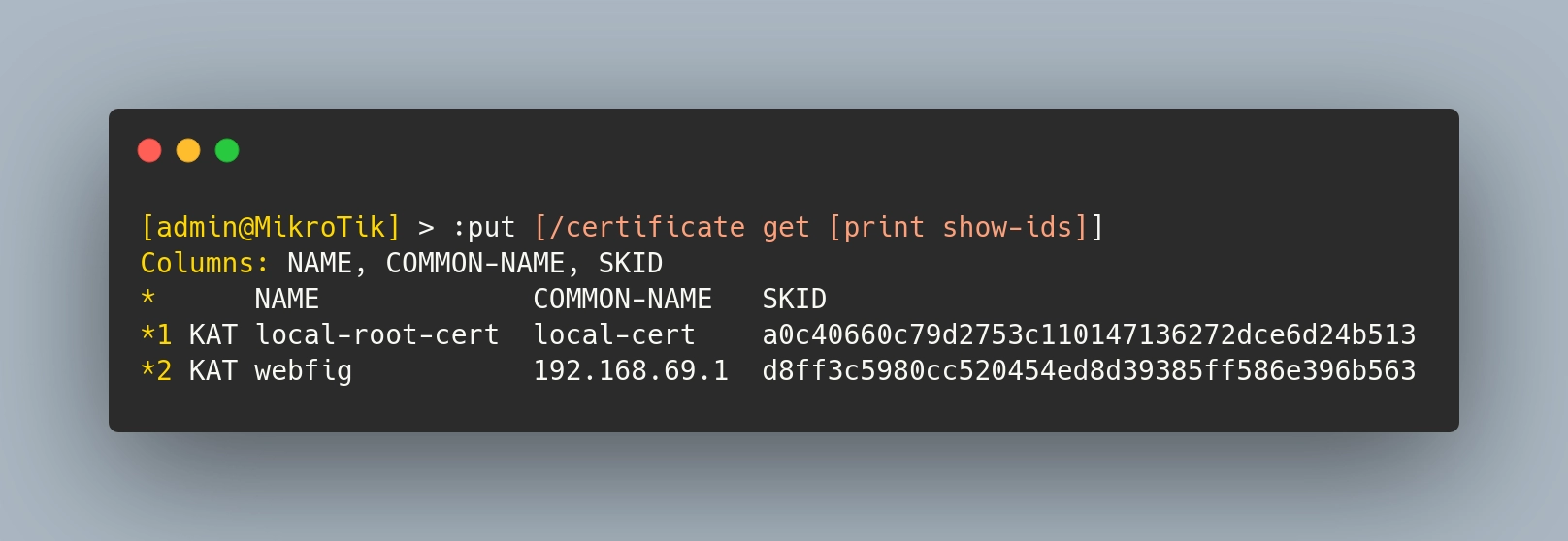Regardless of which option I choose, I firstly need to get the IDs of the certs.