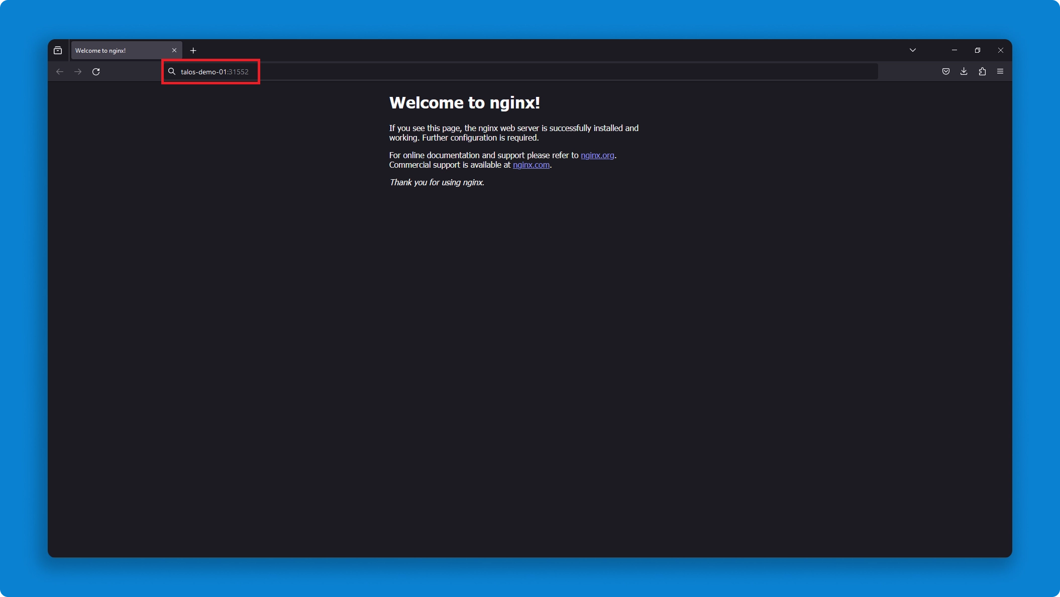 And there you have it! We’ve successfully deployed a Kubernetes cluster in our infrastructure using Talos Linux and we also ran a test workload to ensure our cluster’s functionality.